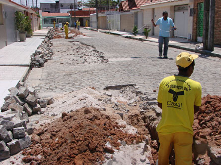 A Companhia de Saneamento de Alagoas (Casal) iniciou nessa segunda-feira (10), a substituição de 121 metros de rede de distribuição de água na rua Jonas Calheiros, no conjunto Pajuçara, em Maceió. A tubulação atual tem diâmetro de 60mm, é de ferro fundido e está parcialmente obstruída; devido a isso, está sendo trocada por canos de 75mm em PVC. Na semana passada, a companhia realizou idêntico trabalho na rua I, no mesmo conjunto. Lá também foram implantados 121m de tubos de 60mm, em PVC.