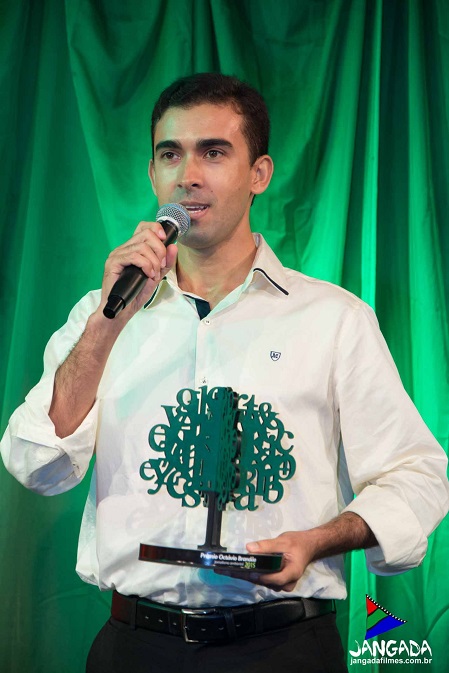 Diego Barros agradeceu aos organizadores ao receber o troféu de primeiro lugar na categoria Webjornalismo (foto: Jangadafilmes)