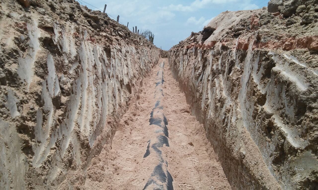 Até agora já foram instalados 6 mil metros da adutora e dois filtros da ETA, que irá pré-montada até o local onde será construída [ao lado do Canal do Sertão]. A previsão para início da construção da ETA é final da próxima semana, por volta do dia 9 de março. E os trabalhadores aguardam apenas a chegada de duas bombas para instalar a estação de captação de água bruta no Canal do Sertão.