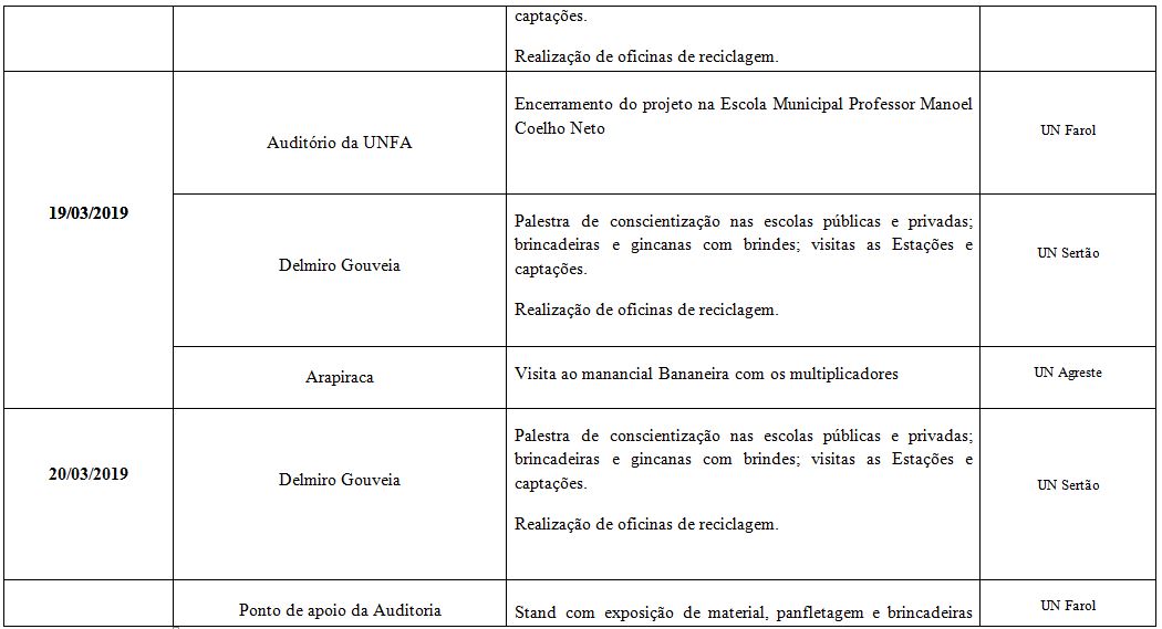 A programação do projeto teve início na segunda-feira (11) e terá continuidade até o dia 29 de março. Confira o dia, a hora e o local de cada evento no cronograma abaixo: