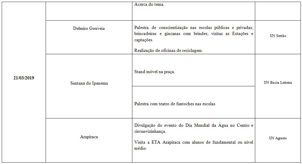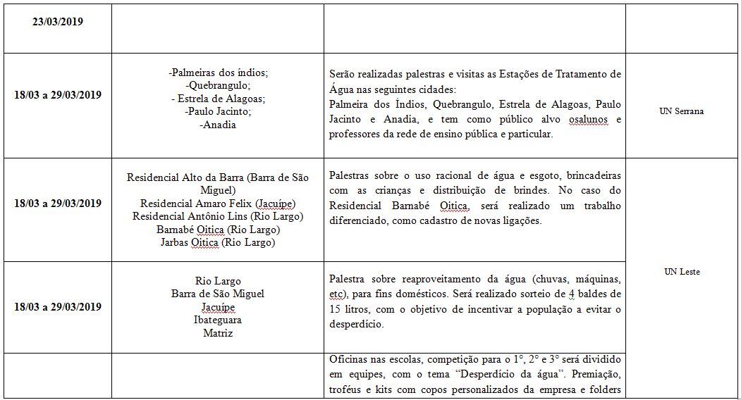 Incluindo palestras pedagógicas em escolas, plantio de mudas, gincanas em colégios, oficinas de reciclagem e visitas a estações de tratamento, a ações da Semana da Água 2019 serão realizadas tanto em Maceió como no interior do estado.