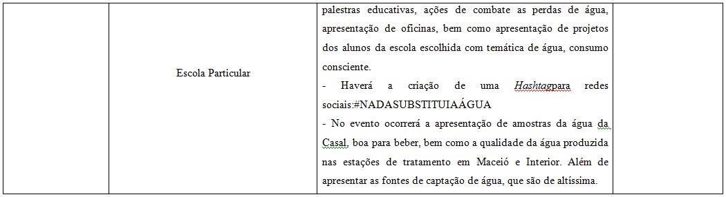 A Companhia de Saneamento de Alagoas (Casal) está realizando uma série de eventos em celebração ao Dia Mundial da Água. Nomeado como Semana da Água 2019, o projeto visa despertar, na sociedade, a consciência ecológica e o interesse pela preservação do líquido.