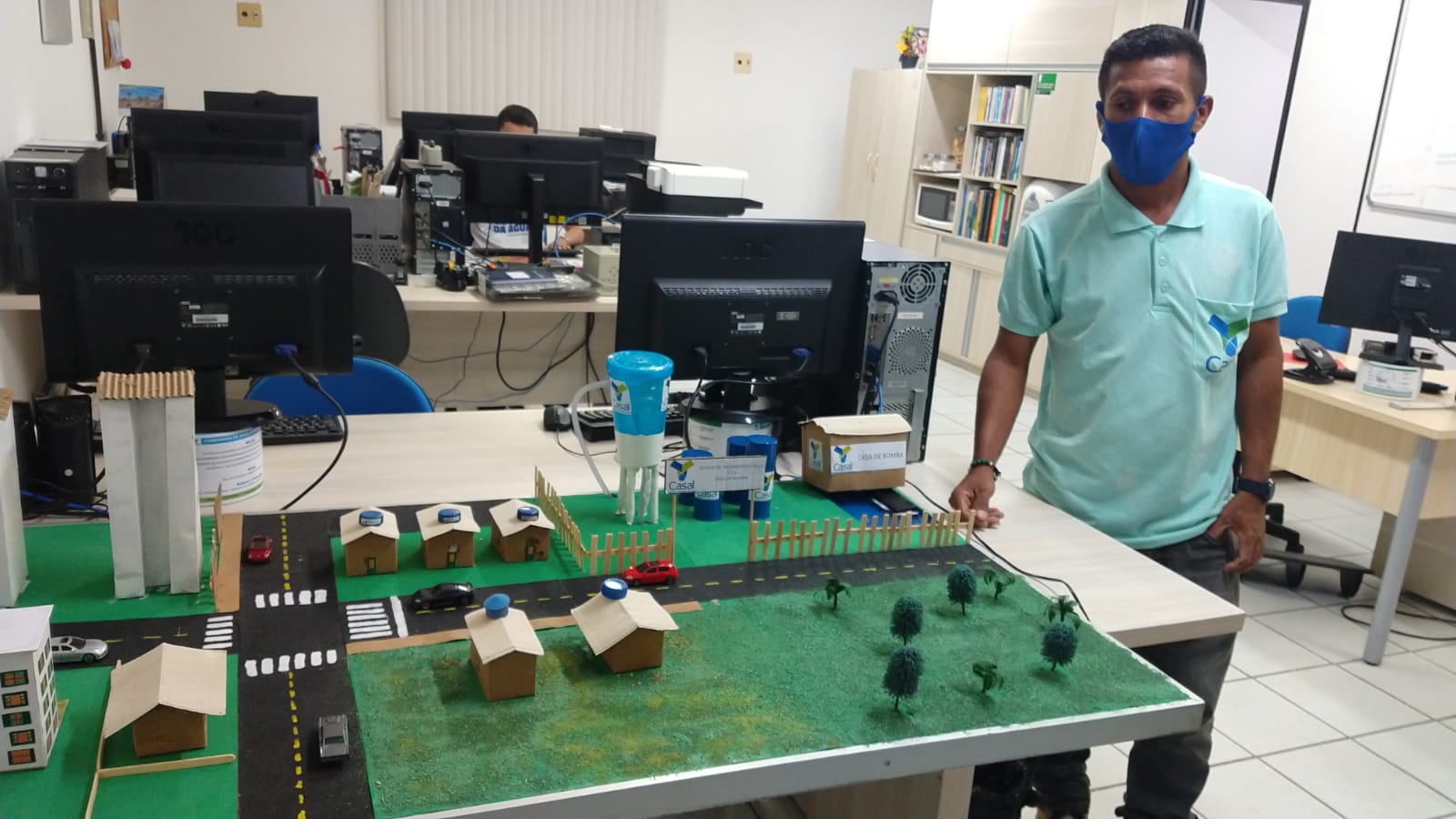 A ETA representada na maquete recebeu o nome de um colaborador que morreu vítima de Covid-19, no início da pandemia, antes do desenvolvimento das vacinas. Ela se chama Estação de Tratamento de Água Hugo de Oliveira. Foi uma forma que os colegas encontraram de homenagear o ex-funcionário, que era contratado de uma empresa privada e esteve a serviço da Casal por mais de uma década.