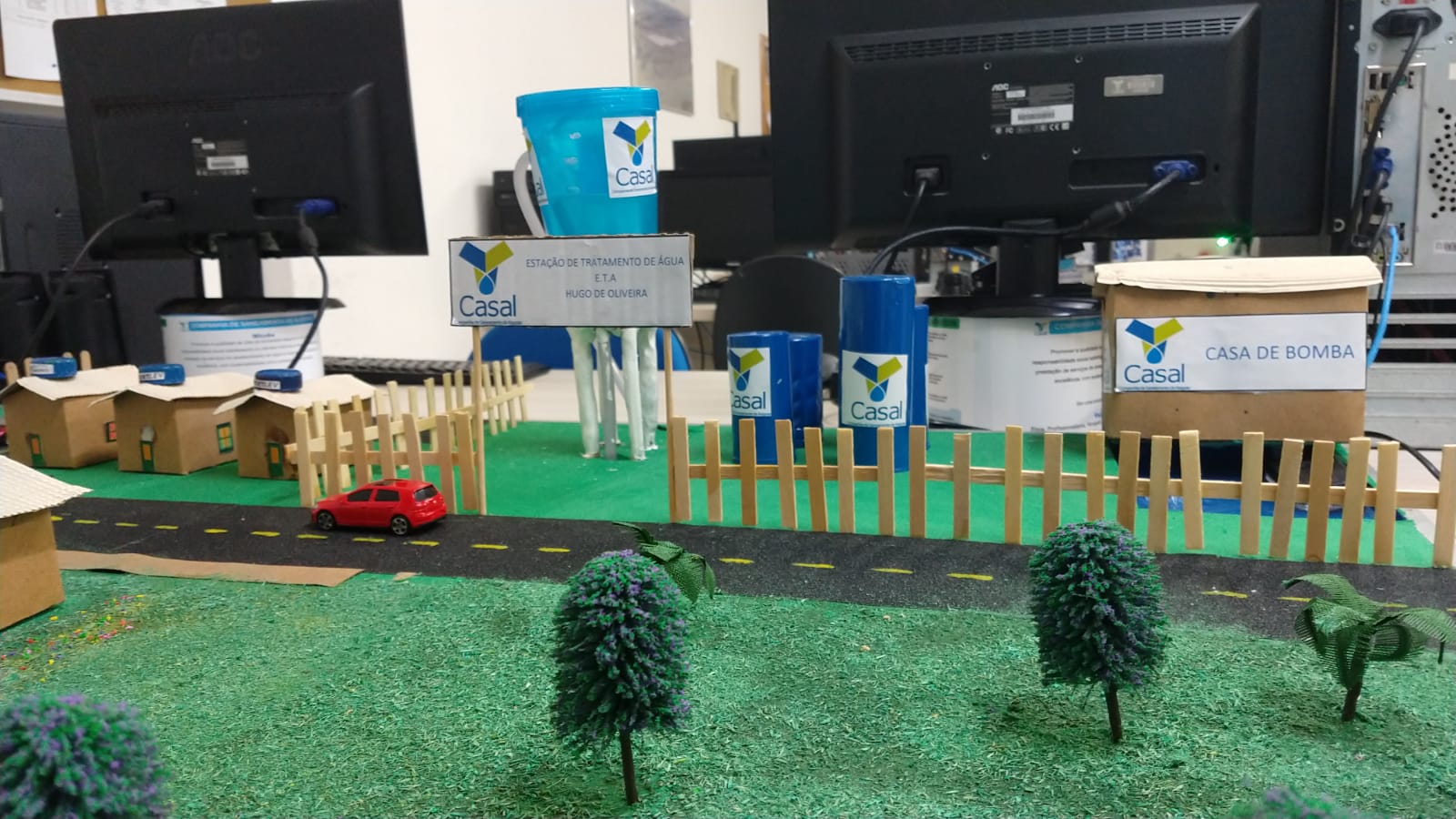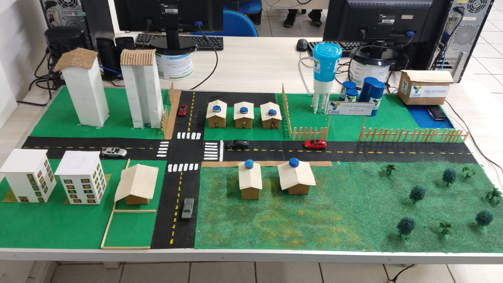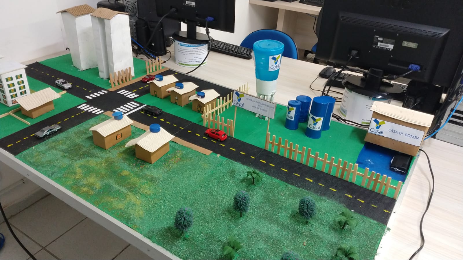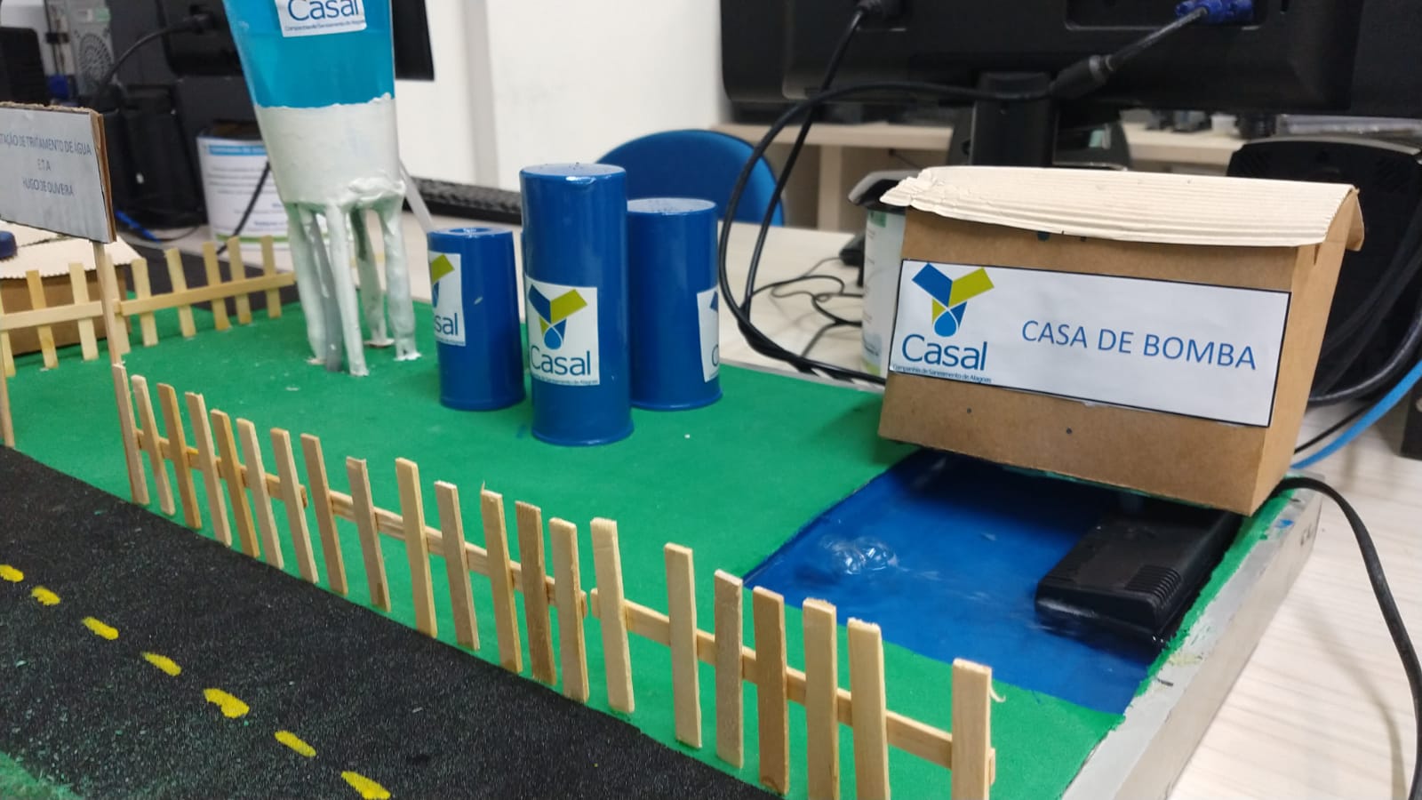 Maquete construída com materiais reaproveitados mostra Estação de Tratamento de Água (ETA)