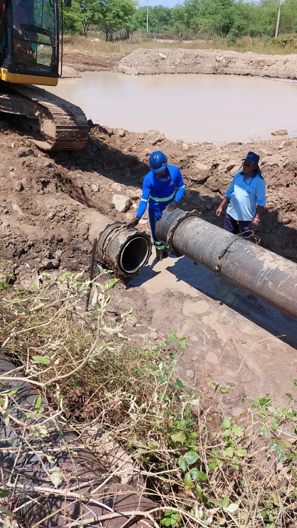 A Companhia de Saneamento de Alagoas (Casal), em parceria com a Águas dos Sertão, segue, nesta quarta-feira (5), trabalhando no reparo da adutora que conecta a Captação do Salgado à Estação de Tratamento de Água (ETA) 03 de Delmiro Gouveia. Esse trabalho teve início ontem (4), após equipes técnicas das empresas verificarem um grande vazamento na estrutura condutora de água.
