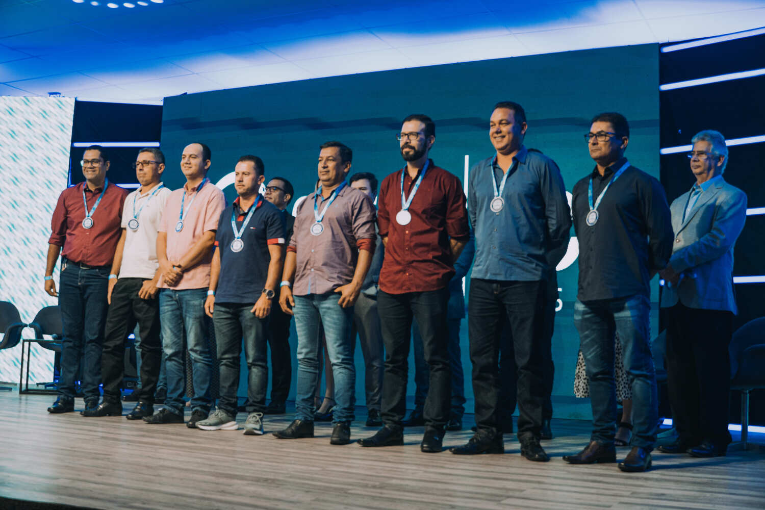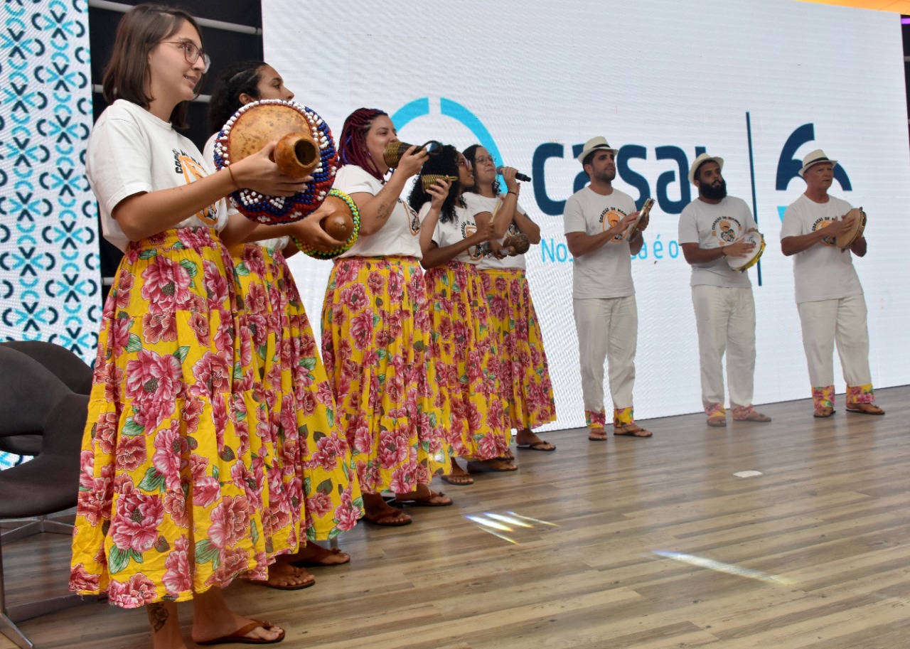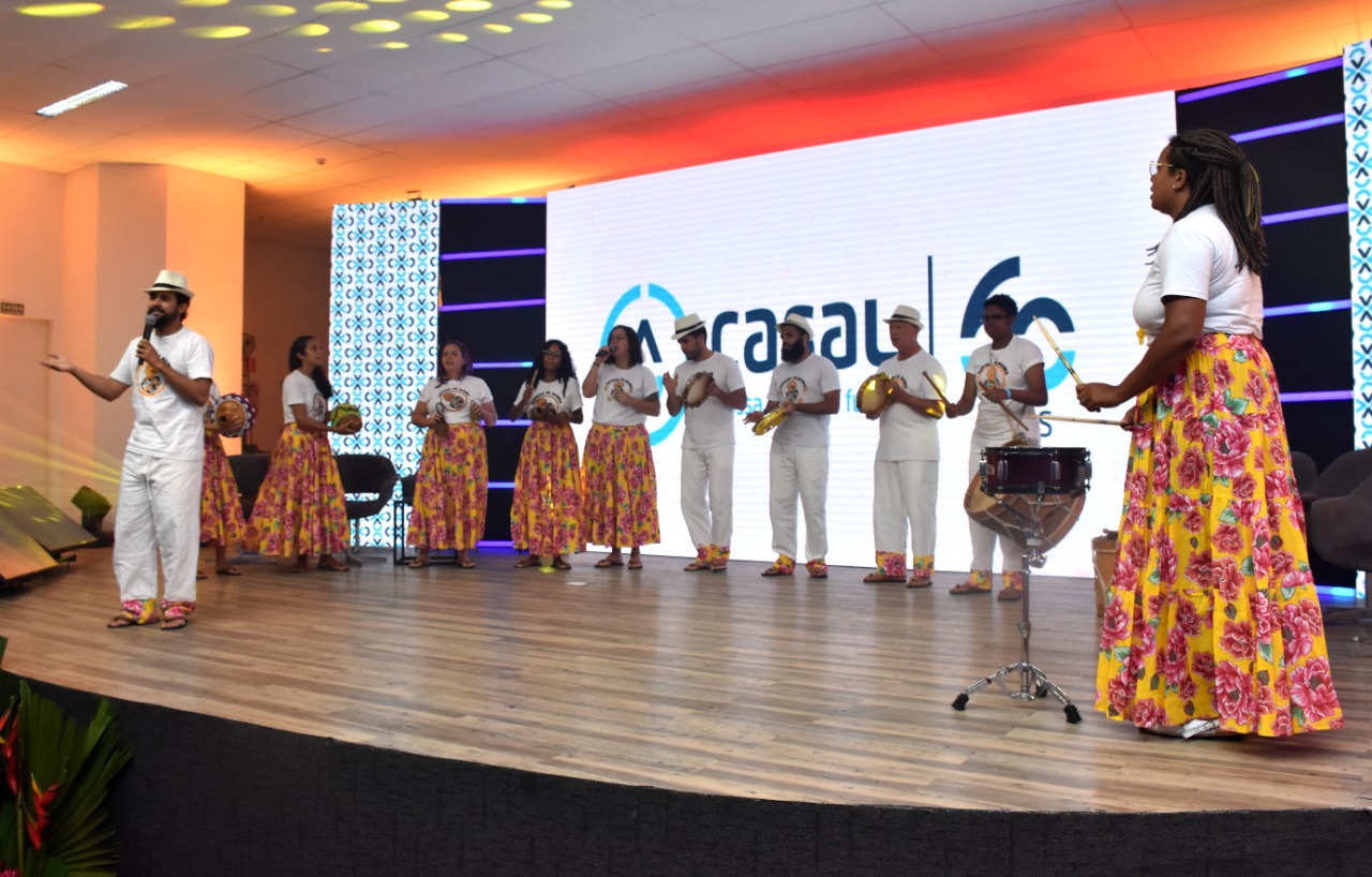Durante a solenidade, que foi aberta com uma apresentação do grupo cultural Coração de Mainha, a Diretoria da Casal, composta pelo presidente Luiz Neto, a vice-presidente Operacional, Laura Petri, o vice-presidente Corporativo, Vítor Hugo Pereira, e o vice-presidente de Engenharia, Marcos Fred Almeida, entregou medalhas de reconhecimento operacional a mais de 60 operadores, técnicos e coordenadores operacionais.