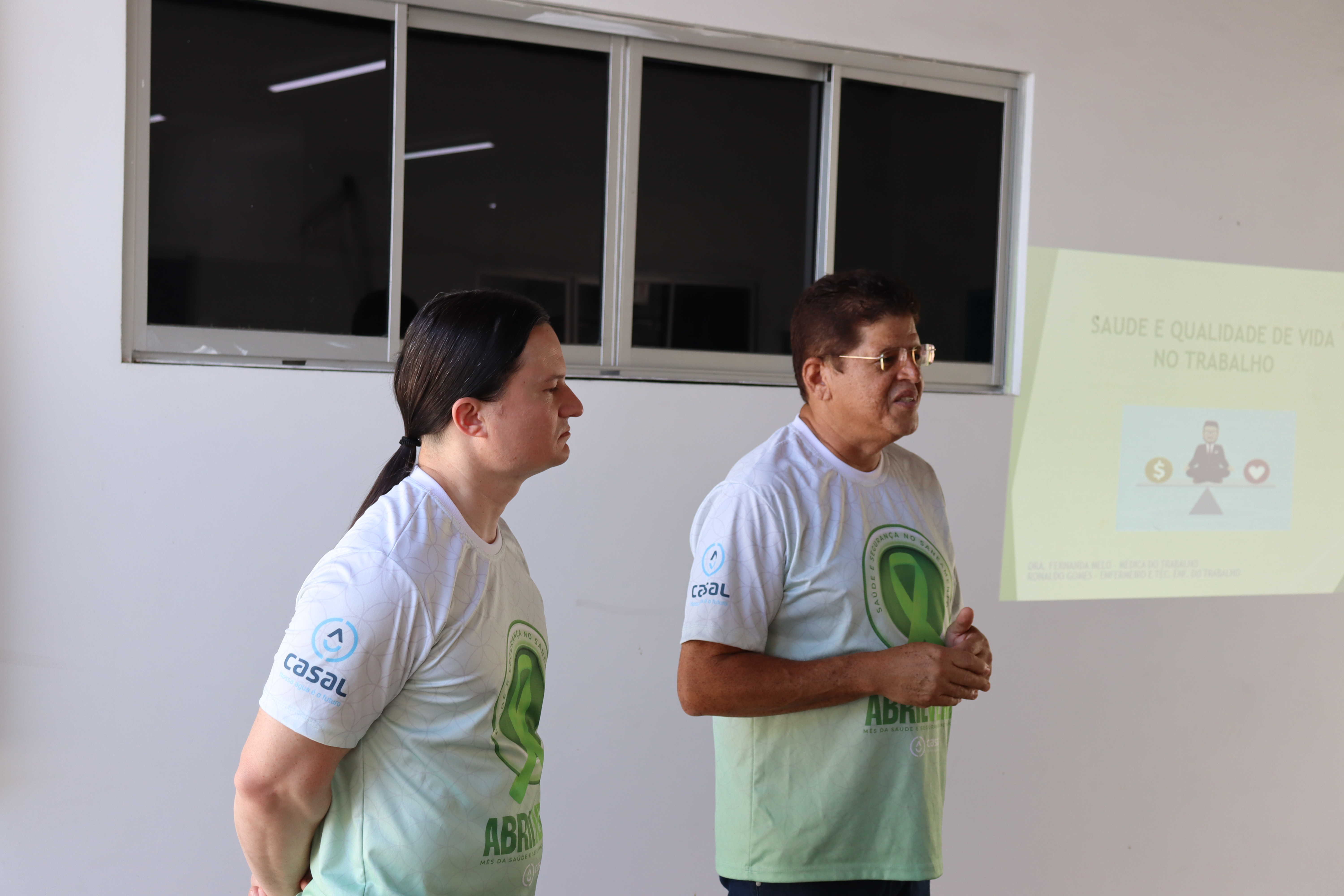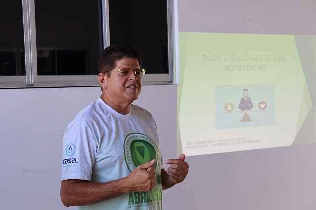 Colaboradores da Companhia de Saneamento de Alagoas (Casal) lotados no prédio-sede da Empresa participaram, nesta sexta-feira (28), da última ação do programa Abril Verde. Essa campanha tratou, com eventos realizados ao longo do mês, de abordar e debater os temas da saúde ocupacional e da segurança no trabalho.