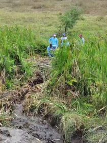 Casal trabalha para retirar vazamento em adutora do Sistema Caçamba